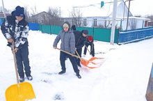 Тимурчы волонтерлар авылда яшәүче өлкән яшьтәге ханымга ишек алдын кардан чистартуда ярдәм күрсәттеләр.