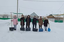 Сәламәтлек көне. Кар десанты бистәдә яшәүче өлкән яшьтәге кешеләрнең ишегалларын һәм мәктәп территориясен кардан чистартты.