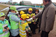 Члены отряда ЮИД вышли на улицу Зелёная. ЮИДовцы раздавали прохожим памятки «Стань заметней в тёмное время суток!»