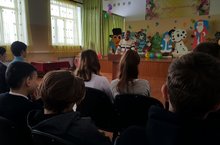 Рус теле һәм әдәбияты атналыгы кысаларында китапханәче Чернова А. Ф. 3 һәм 4 сыйныф укучылары белән " Әкиятләр дөньясында" викторинасын үткәрде. Балалар бик теләп җырлар җырладылар, сорауларга җавап бирделәр, ребуслар чиштеләр.