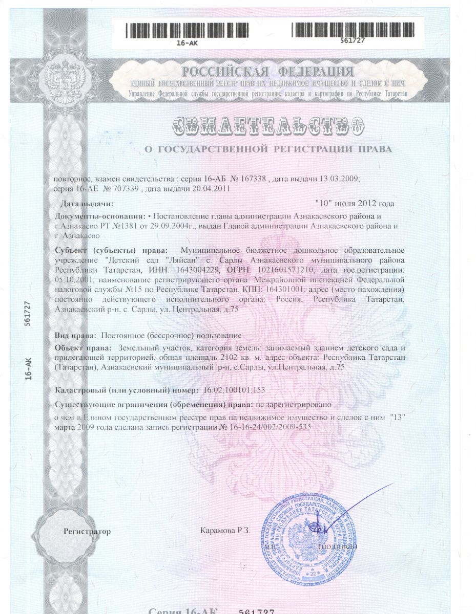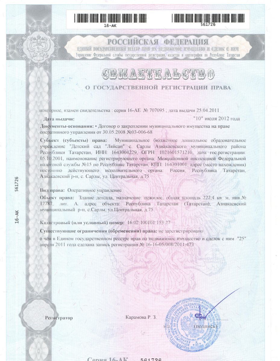 Адрес: 423315, Республика Татарстан, Азнакаевский район, с. Сарлы, ул. Центральная, д. 75