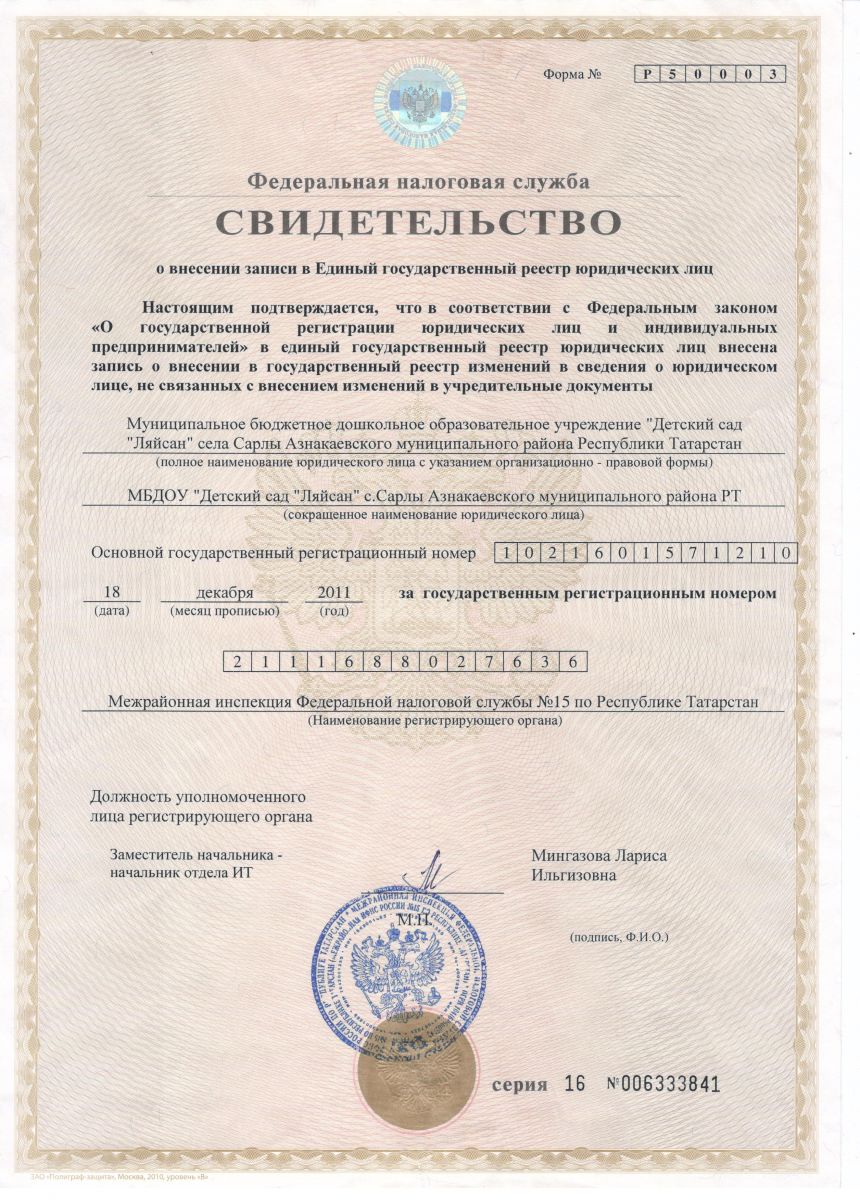 МБДОУ «Детский сад «Ляйсан» с. Сарлы Азнакаевского муниципального района РТ» (реорганизация с 23.03.2022)
