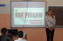 Бүген мәктәп күләмендә "Коррупөияга-Юк!" дибез темасына тәрбия сәгате уздырылды. Тәрбия сәгатендә җәмгыять белеме укытучысы Нәфисә Кыям кызы коррупция тарихы белән таныштырды.Бу сүзгә билгеләмә бирде.Илдә барган көрәш турында чыгыш ясады. Азнакай районы һәм шәһәренең опека һәм попечительлек бүлеге җитәкчесе Муфаздалова Илюзә Мәкәрим кызы районда уздырылган чаралар белән укучыларны таныштырып китте.