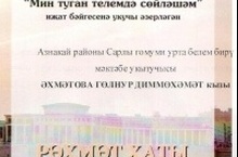 "Мин туган телемдә сөйләшәм" иҗат бәйгесендә 10 сыйныф укучылары Мөхәммәдиева Э.,Фаттахова Ә. катнашты. Җитәкчесе Г.Д.Әхмәтова.