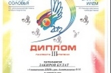 Наш учащийся Закиров Булат от имени Азнакаевской детской школы искусств участвует в финальном туре ХV фестиваля детского творчества "Страна поющего соловья" фонда духовного возрождения "Рухият" ОАО "Татнефть" в номинации "вокал-соло". И Булат вернулся с победой. Поздравляем!