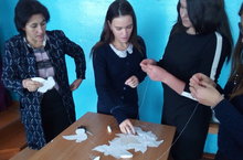 Акция кысаларында сыйныф сщгате уздырылганнан сон тынычлык символы күгәрченнәрне стендка һәм актлар залына элеп куйдык.