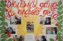 13 апреля школа была украшена творческими работами учеников 6 класса - стенгазета "Жизнь дана на добрые дела" и учеников 5 классса - папка-раскладушка "Пять шагов к доброте".