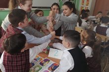 Стартовала неделя английского языка. Начало положила игра-квест "Grammar with pleasure" среди учащихся 4-ых классов. Прошли состязания на знание грамматики английского языка. Мороженое из степеней сравнения прилагательных, поезда из неправильных глаголов-это и многое другое пришлось собрать во время испытаний.