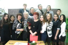 Встреча с ветераном войны 08.04.2015 11а класс укучылары Бөек Ватан сугышы ветераны Хасаншин Мөбәрәк Гәрәевичның сугышчан юлын өйрәнеп, аңа багышлап альбом һәм стенд төзеделәр, ветеран белән очрашу үткәрделәр (8 апрель,2015ел).