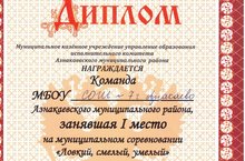 10 сентября команда нашей школы участвовала в соревнованиях «Ловкий, смелый, умелый» среди 5классов школ г.Азнакаево приуроченных к старту Всероссийского физкультурно-спортивного комплекса ГТО и заняла 1место.:Авзалова А, Никонова В, Исмагилова А, Ахмадишина А, Рахимова Г, Ногуманов К, Сулейманов Д, Газизов Р, Рахимов А, Сахаутдинов А.