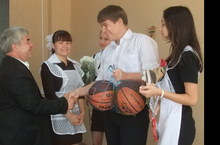 На торжественной линейке, посвященной дню Знаний, старшеклассникам были вручены баскетбольные мячи от Министерства Образования, за участие в соревнованиях школьной баскетбольной лиги.