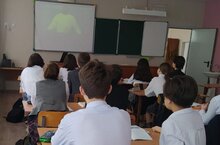 12.04.2022г. в рамках недели физики и астрономии ученикам 7 класса был показан видеофильм «Первый в космосе». Учитель Галимова Г.З.