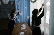 С 14.12.16 началась работа по подготовке и оформлению к Новому году классов, фасада школы, фойе начальных классов и актового зала.