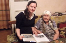 Рәсемдә: мәктәп профкомы җитәкчесе Хәйртдинова Г.Ә.ветеран укытучы Ганиева Хасбиямал Шәрип кызы белән.