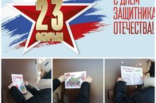 Отряд волонтёров "Добрята" (учащиеся 7а класса) поздравил жителей микрорайона с наступающим Днём защитника отечества. (Кл.рук. Артемьева Л. Г.)