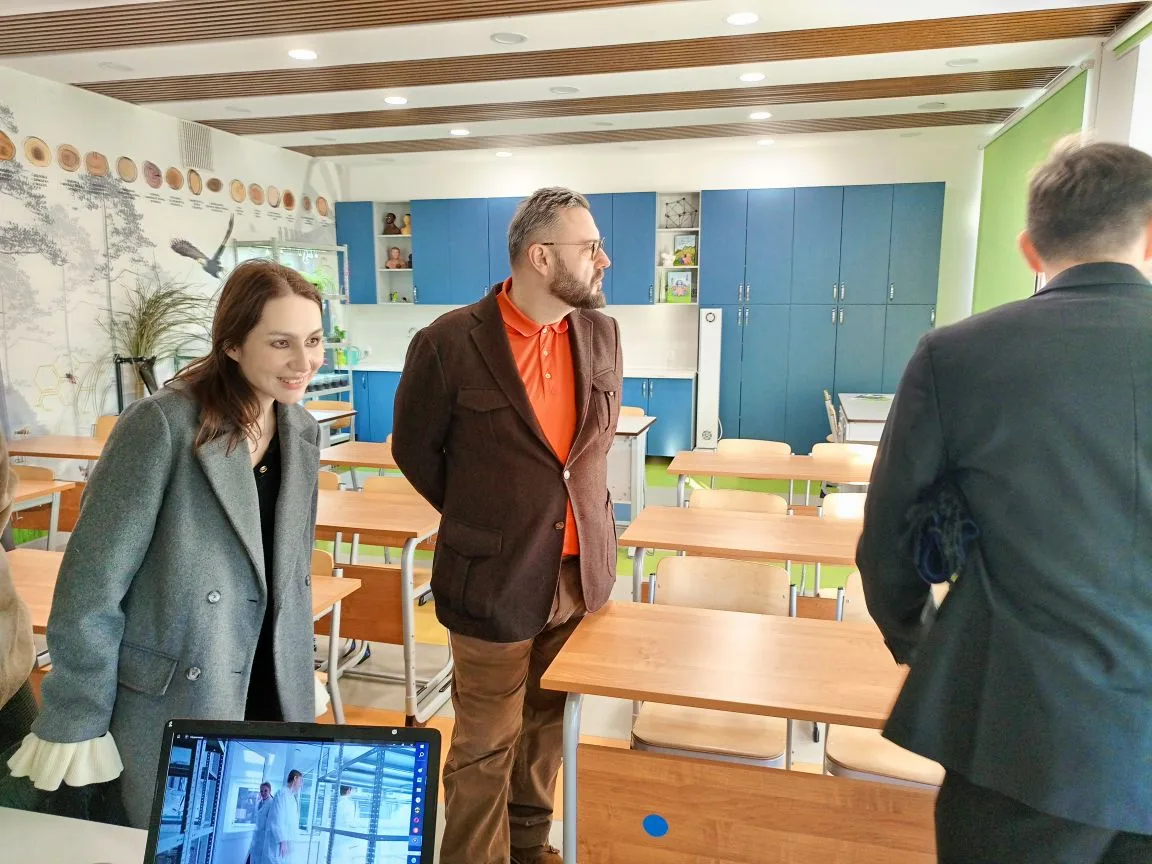 Наша школа радушно встречала представителей из Москвы: Белозерова Георгия Александровича, заместителя генерального директора, и Газизуллину Альбину Рамилевну, руководителя направления перспективных проектов. Визит был посвящен ознакомлению с современной теплицей и посещению школьной биологической лаборатории.