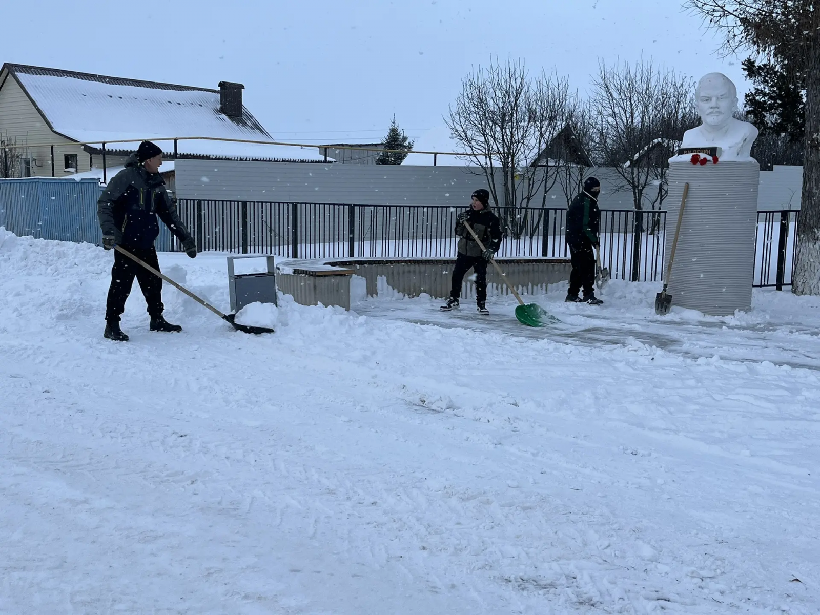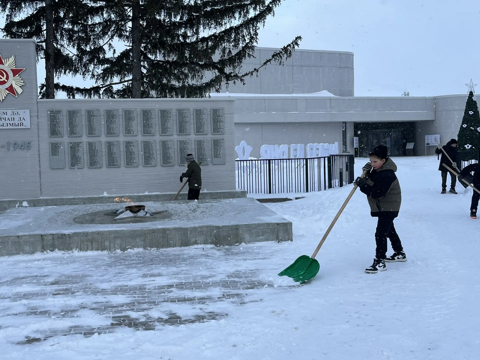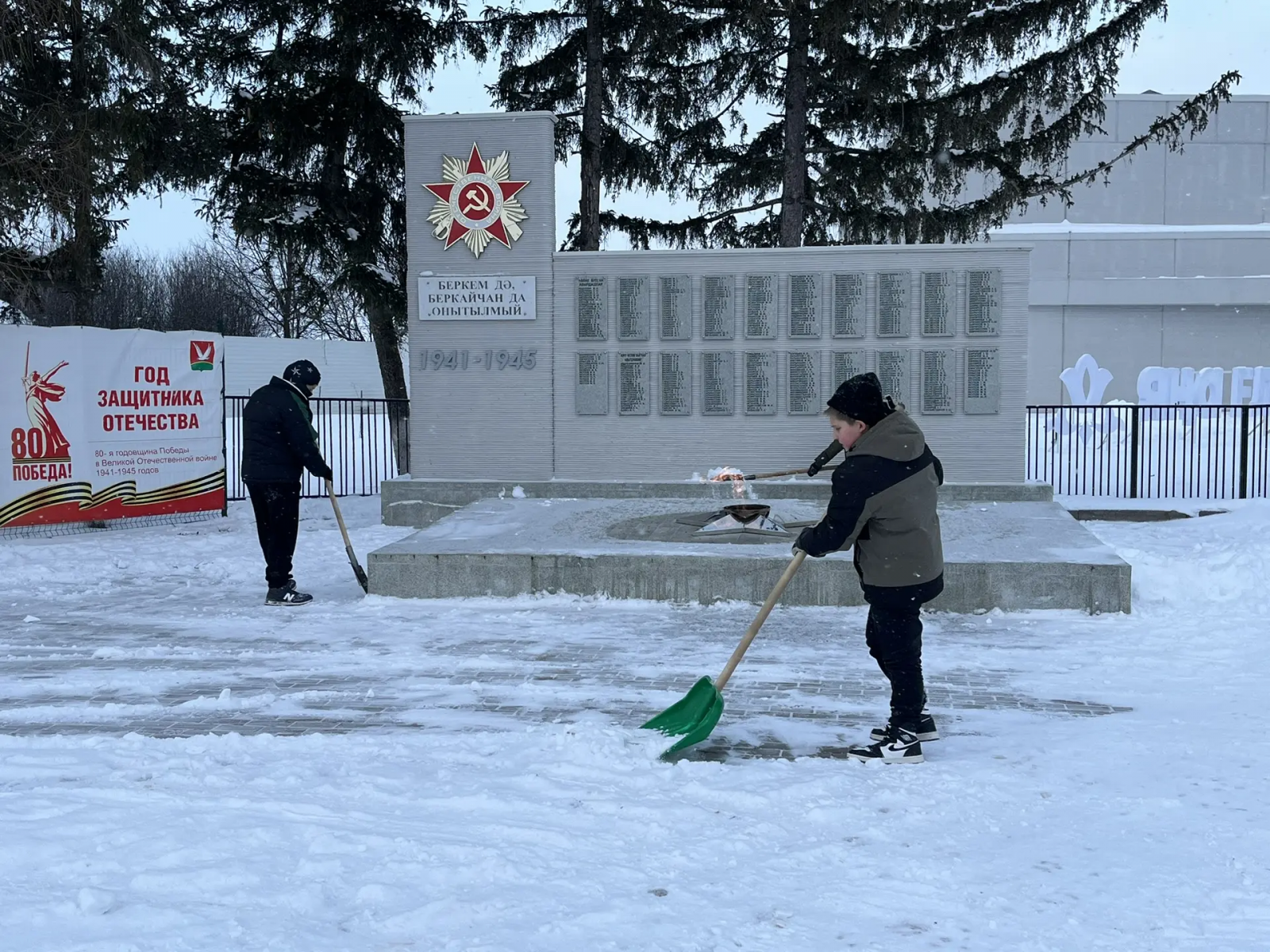 Алтынчы һәм сигезенче сыйныф укучылары мәктәп янын кардан чистарттылар.