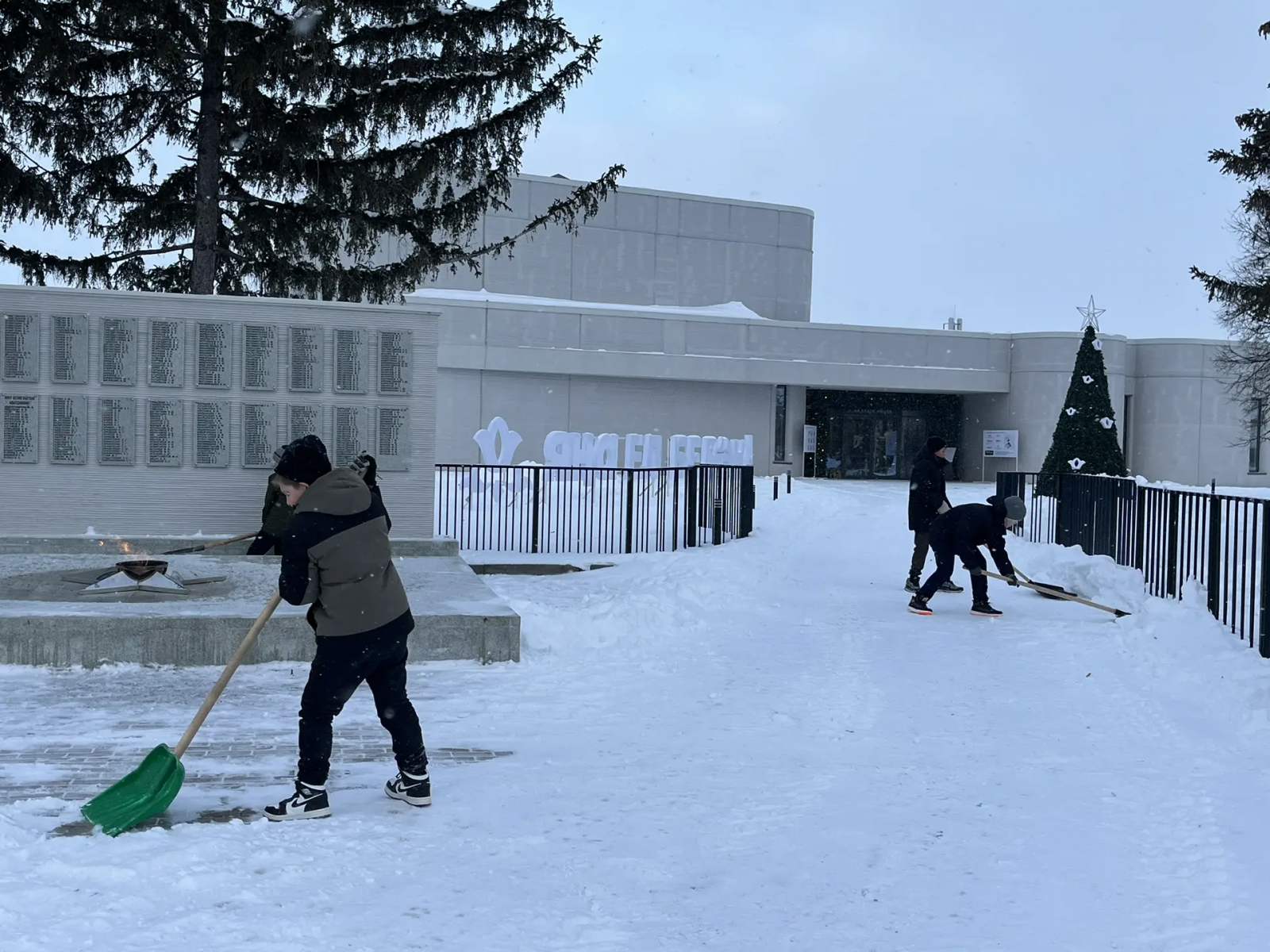 Уборка снега на территории школы/ Мәктәп янын кардан чистарту
