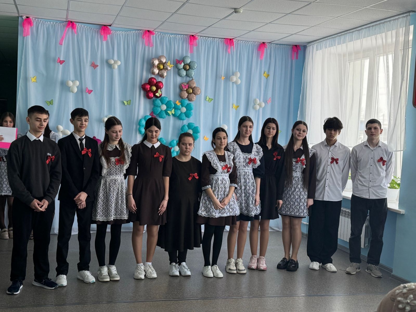 В нашей школе прошёл праздничный концерт, посвящённый 8 Марта. В этот день дети подготовили и представили свои творческие номера: пели песни, читали стихи, танцевали и показывали небольшие сценки. Главными гостями праздника стали мамы, бабушки и матери героев СВО. Атмосфера была тёплой и трогательной — все с любовью и уважением поздравляли женщин с этим весенним праздником, выражая благодарность за их заботу и поддержку.