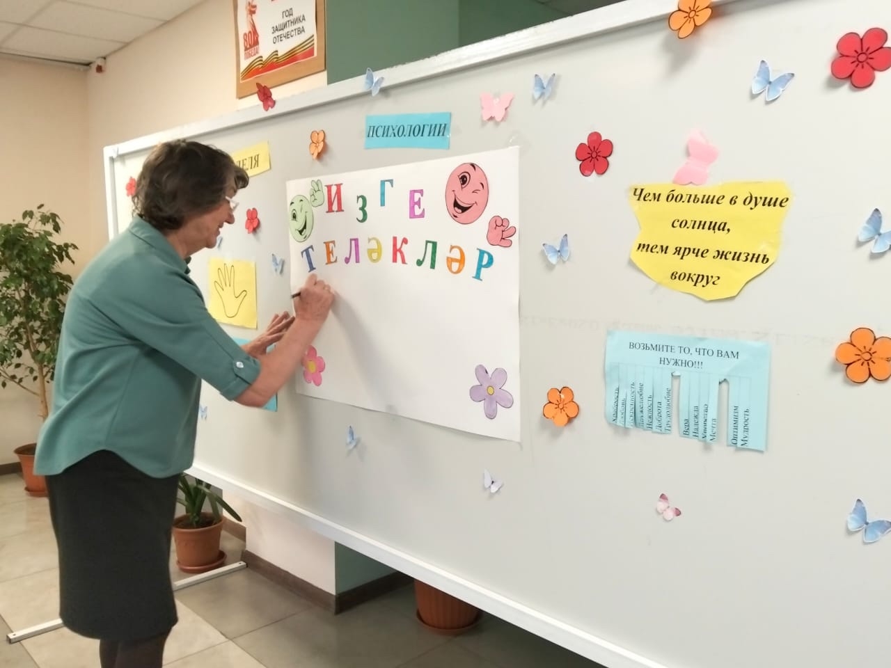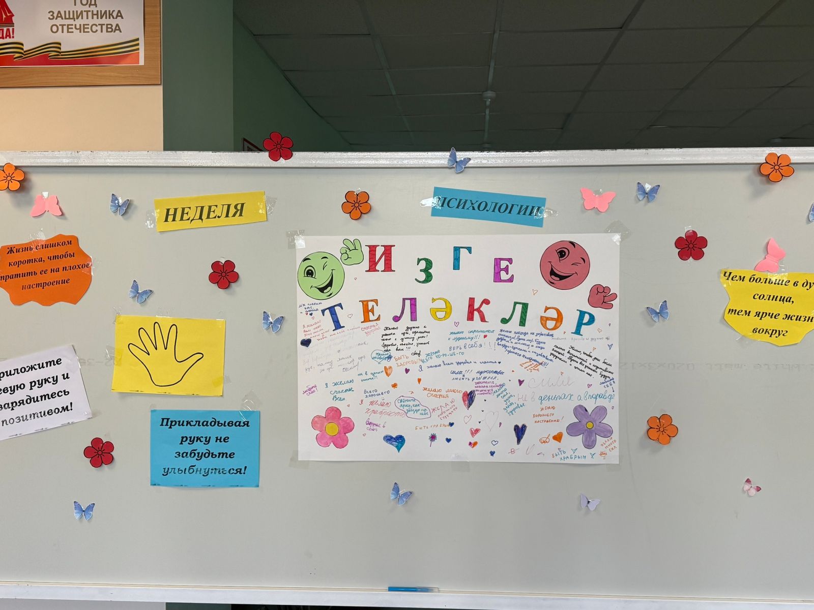 Бу атнада мәктәптә психология атналыгы уза. Мәктәпнең медиа-үзәге «Изге теләкләр» плакатын ясады, аны мәктәп фойесына элеп куйдылар. Балалар үзләренең дусларына һәм кадерле укытучыларына теләкләр яздылар. Син башкага нидер телисең икән, ул аңа гына түгел, сиңа да килә! "Изге теләкләр" акциясе мәктәптә уңайлы климат булдырырга, укучыларыбызның кәефен күтәрергә, елмаюлары һәм яхшылыклары белән уртаклашырга мөмкинлек бирде. Безнең мәктәп укучылары зур кызыксыну, энтузиазм һәм теләк белән үз теләкләрен яздылар. Акция беркемне дә битараф калдырмады! Әйдәгез, аны традицион итеп эшлик, дустыңа бүләк ителгән яхшылык сиңа күп тапкырлар әйләнеп кайтачак бит.