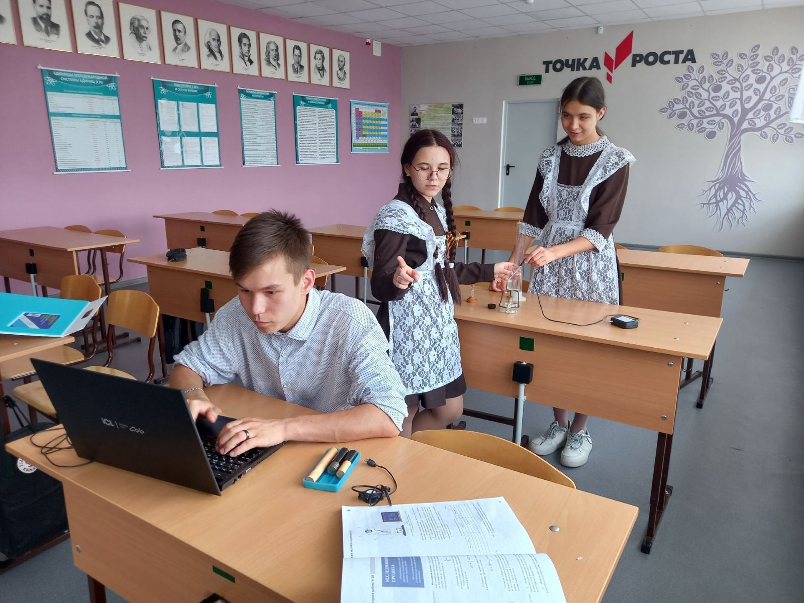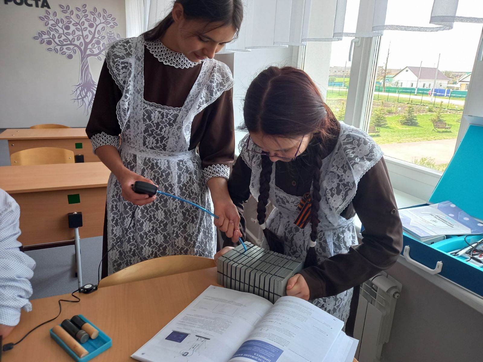 Физика дәресендә 9 нчы сыйныф укучылары «Үсеш ноктасы» җиһазларын кулланып практик эш башкардылар. Балалар «Үсеш ноктасы» үзәге җиһазларын кулланып каты җисемнәрнең басымын үлчәделәр.#ГодПедагогаНаставника
