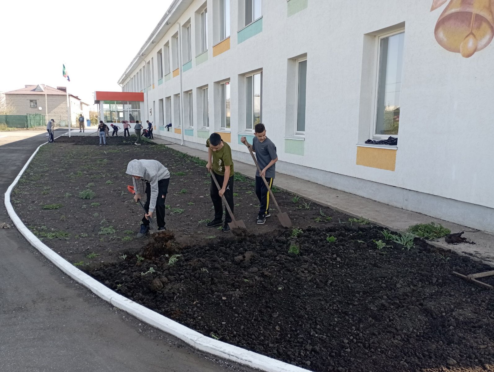 Яз җитү белән мәктәп яны участогында эш кайный башлый. Укучы балалар җирне эшкәртәләр, түтәлләр ясыйлар. Яшелчәләр, чәчәкләр утырталар. 29 нчы апрель көнне мәктәп бакчасында 1-11 нче сыйныф укучылары һәм укытучылар бик тырышып эшләде.#ГодПедагогаНаставника