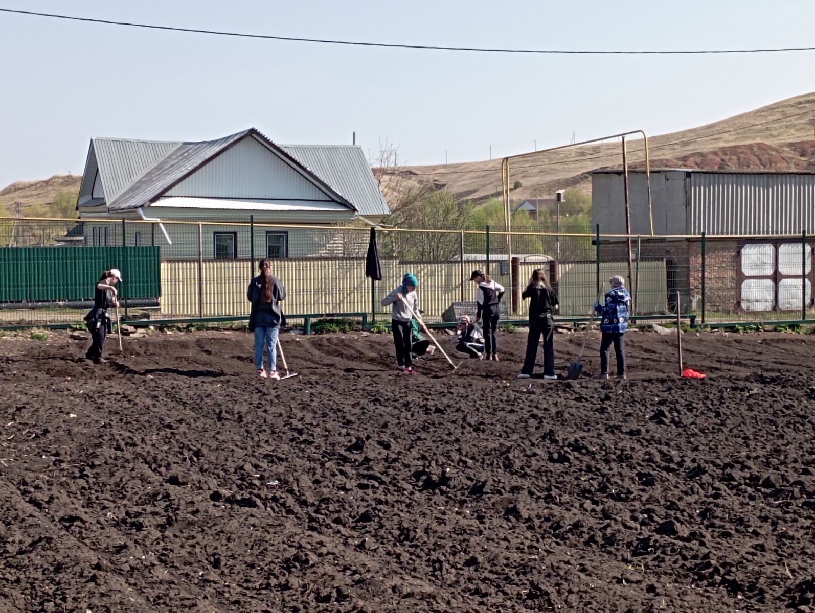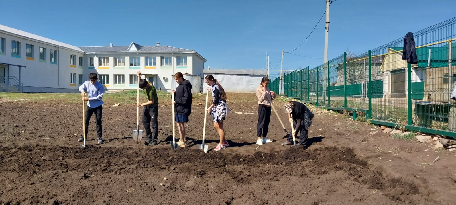 С наступлением весны работа на пришкольном участке кипит. Школьники обрабатывают землю, делают грядки. Сажают овощи, цветы. 29 апреля в школьном саду усиленно трудились ученики 1-11 классов и учителя.