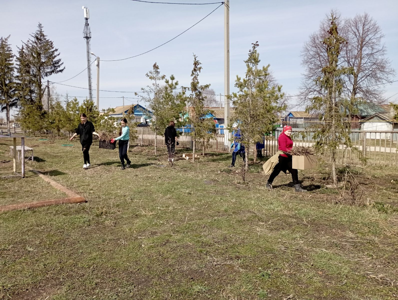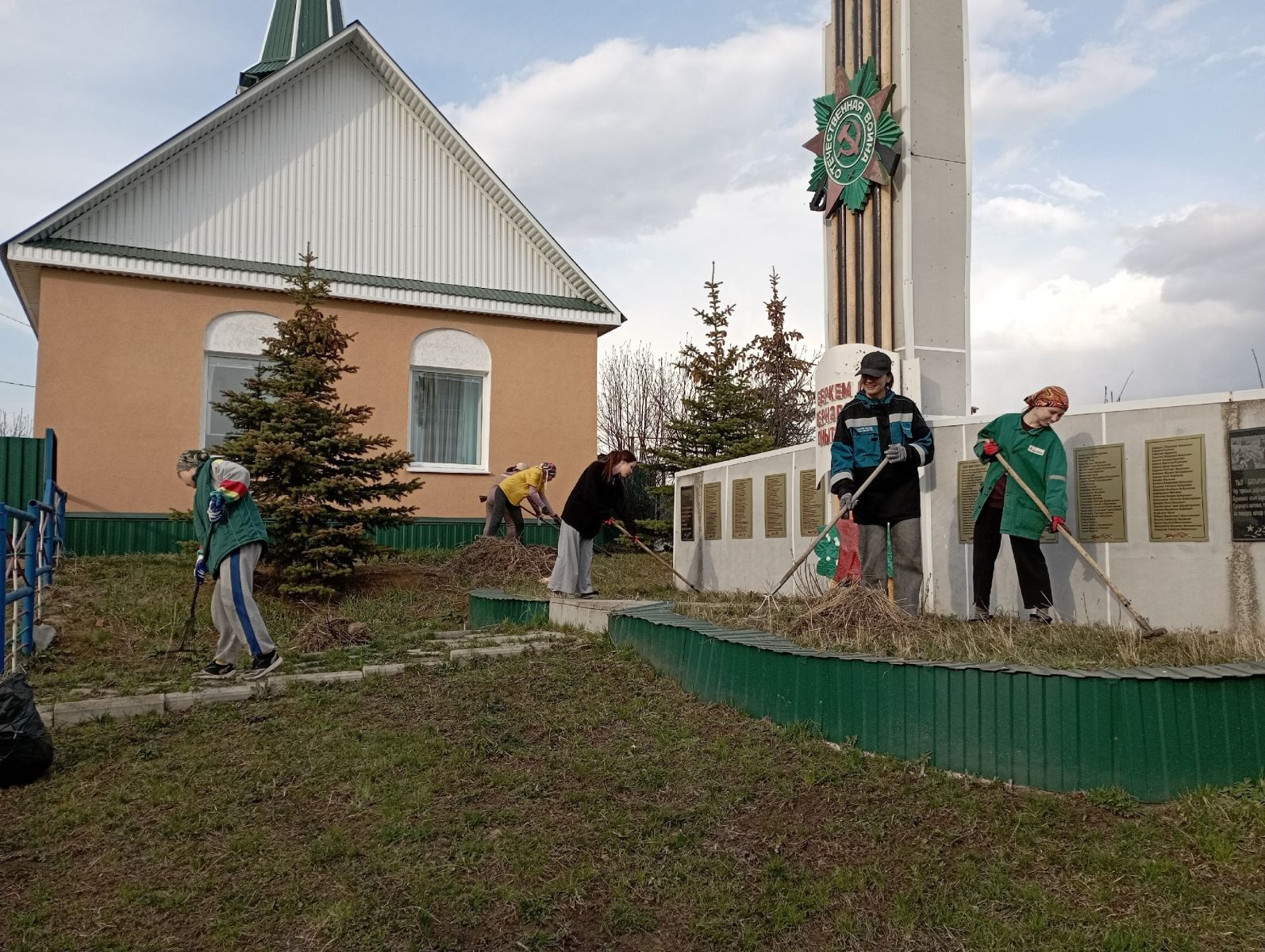 Традиционная акция «Обелиск» по уборке территории возле памятника погибшим односельчанам/ Һәлак булган авылдашларына һәйкәл янындагы территорияне җыештыру буенча « Обелиск» традицион акциясе