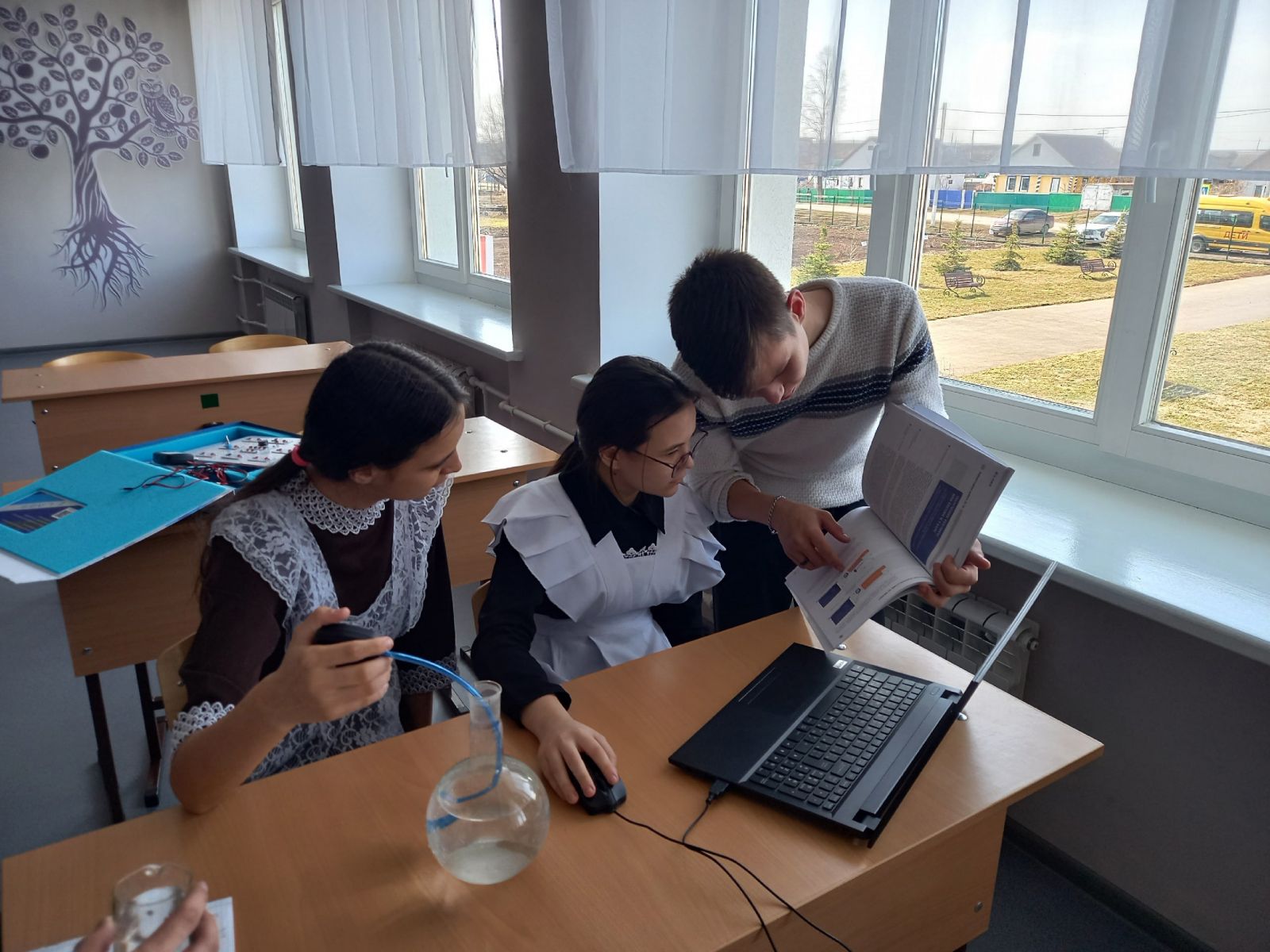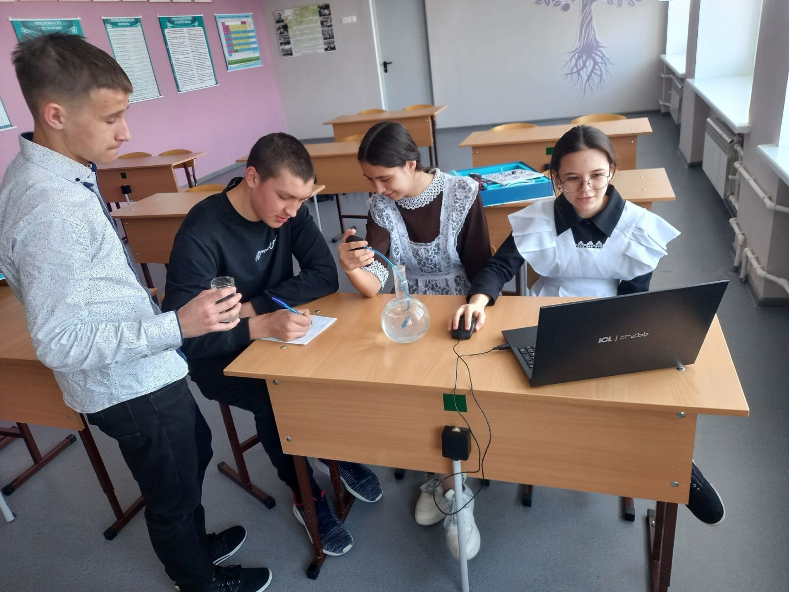 В рамках недели "Точки роста" сегодня учащиеся 9 классов провели опыты. Они измерели давления на различных глубинах и вычислили длину колбы без линейки.
