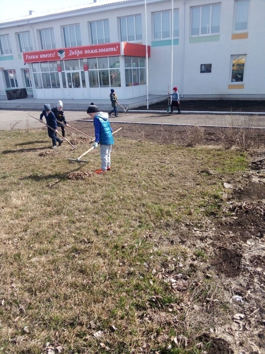 4 нче апрельдә безнең мәктәптә өмә узды, анда мәктәп педагоглары һәм укучылар катнашты. Кирәкле инвентарь белән коралланып, балалар һәм педагоглар мәктәп территориясен тәртипкә китерделәр: чүп-чар җыйдылар, узган елгы яфракларны һәм үләннәрне җыеп алдылар. Берничә сәгать эчендә бөтен территория үзгәрде: һәр җирдә чиста һәм матур