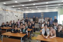 У нас прошла встреча с выпускником нашей школы, участником боевых действий на Украине , Хусаиновым Динаром. Он рассказал о ситуации на местах проведения боевых операций, отвечал на вопросы учащихся и пожелал учащимся, чтобы они тянулись к знаниям, чтобы учились дружить, были терпеливыми и толерантными к друг другу.