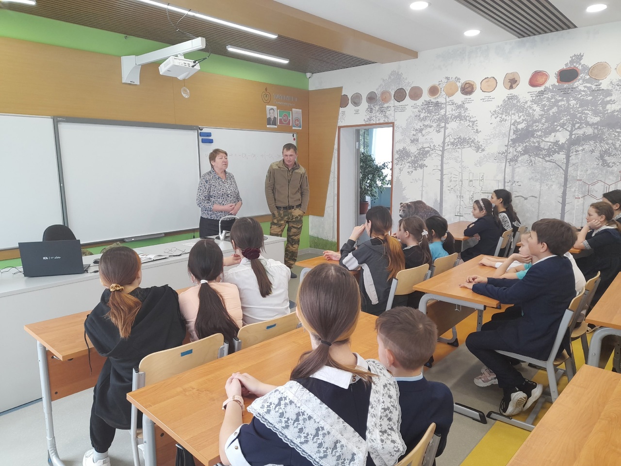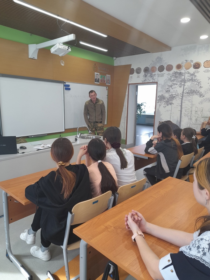 Встреча с выпускником нашей школы, участником боевых действий/ Безнең мәктәпне тәмамлаучы, сугыш хәрәкәтләрендә катнашучы белән очрашу 14.03.2023