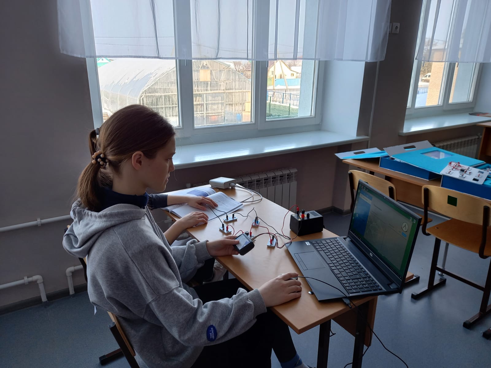 Җиһаз алу белән “Үсеш ноктасы” үзәгенең физика укытучысы Гөлназ Рөстәм кызы аны һәр дәрестә диярлек куллана. 10 нчы сыйныф укучылары физика бүлекләрен яңа җиһазлар белән бик теләп өйрәнәләр. Җиһазлар үсеш ноктасы укытучыга яңа темаларны аңлатканда булыша, укучылар теманы тирәнрәк аңлыйлар. Физик эксперимент шикне таратырга сәләтле, әгәр алар теге яки бу раслауга ышанмасалар. Лаборатор эшләрне башкару барышында балалар инде танылган законнарны яңадан ачтылар. 10 нчы класс өчен физика дәресе «Гей-Люссак законын эксперименталь юл белән тикшерү. Изохор процессын тикшерү». Эшнең максаты: төрле температурада һава баганасы күләмен үлчәү һәм изобар процесс өчен Гей – Люсак законының үтәлешен тикшерү.#ГодПедагогаНаставника