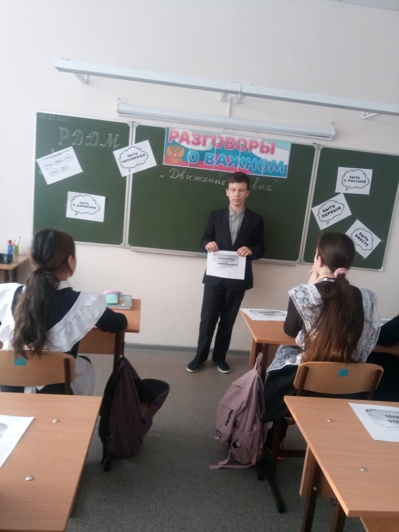 30 января в нашей школе прошел урок "Разговоры о важном" на тему: Российское движение детей и молодежи "Движение первых"/30 гыйнварда безнең мәктәптә "Мөһим нәрсәләр турында сөйләшү" дәресе үтте. Аның темасы: Россия балалар һәм яшьләр хәрәкәте "Беренчеләр хәрәкәте" 30.01.2023