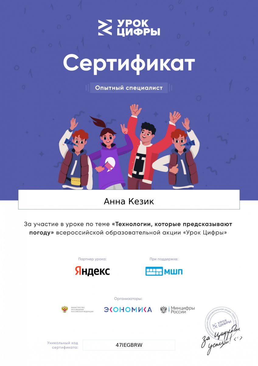 «Урок Цифры» по теме «Технологии, которые предсказывают погоду»/ "Һава торышын фаразлаучы технологияләр" темасы буенча «Саннар дәресе» 17.01.2023