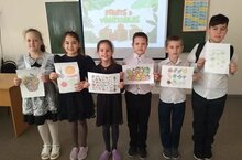 Конкурс рисунков приуроченый к неделе английского языка на тему: "Fruits and vegetables ABC!" Ученики с интересом расказали о своих любимых продуктах и расставляли названия по алфавиту.