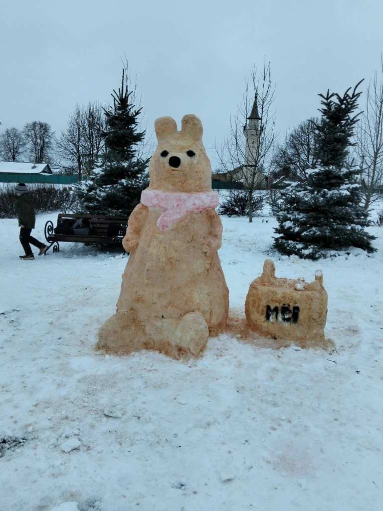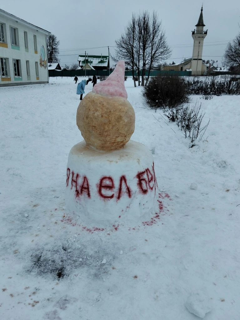 Яңа ел алдыннан безнең мәктәп ишегалдында кардан ясалган матур сыннар пәйда булды.