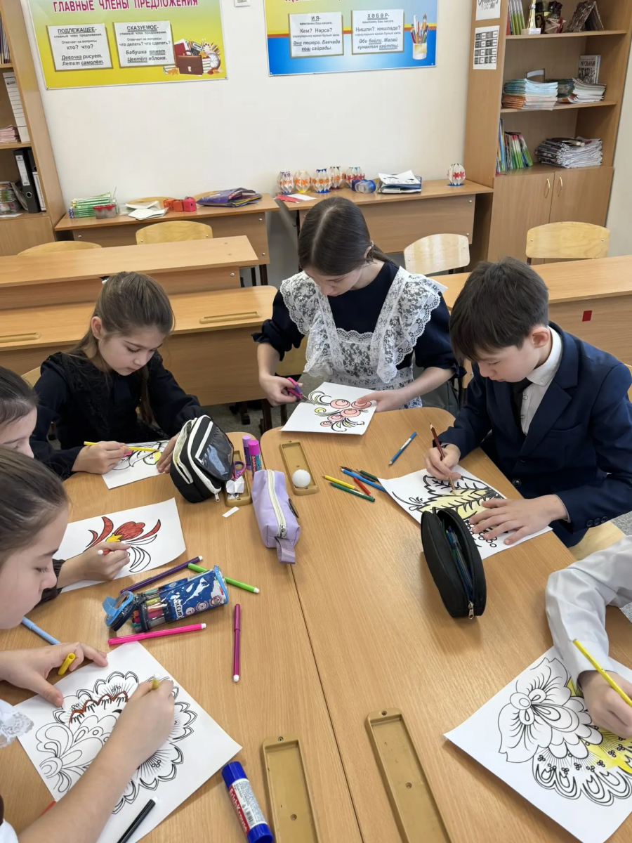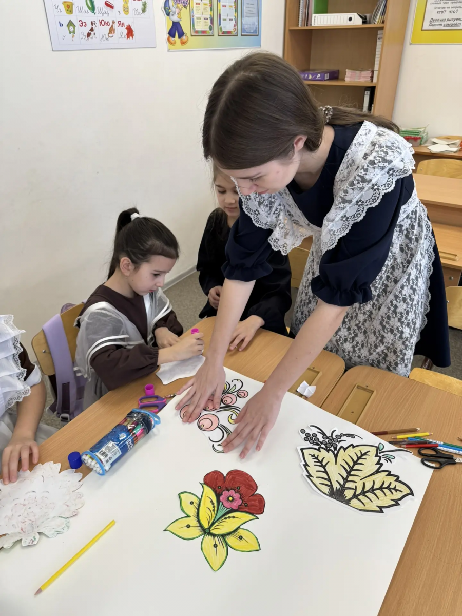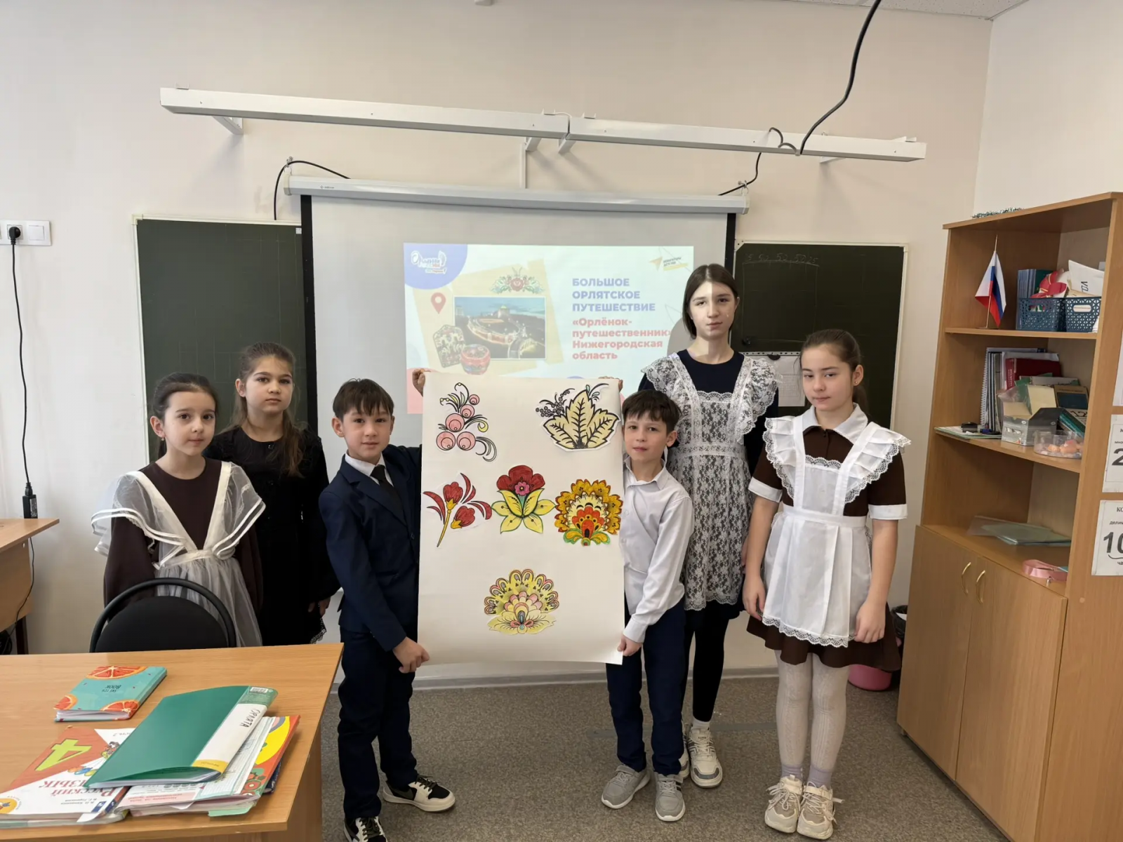 В рамках увлекательного проекта "Орлёнок-Путешественник" наши четвероклассники совершили захватывающее путешествие в Нижегородскую область! Вместе со своим наставником и советником директора по воспитанию ребята отправились в самое сердце русской народной росписи, чтобы узнать все секреты знаменитой золотой хохломы. Это было настоящее погружение в мир ярких красок и старинных традиций! Ребята не только познакомились с историей и особенностями хохломской росписи, но и сами смогли прикоснуться к творчеству: под чутким руководством наставника и советника, они раскрасили узоры хохломы, а затем, объединив свои творения, создали настоящую скатерть на ватмане, ставшую символом их совместного путешествия и познания.