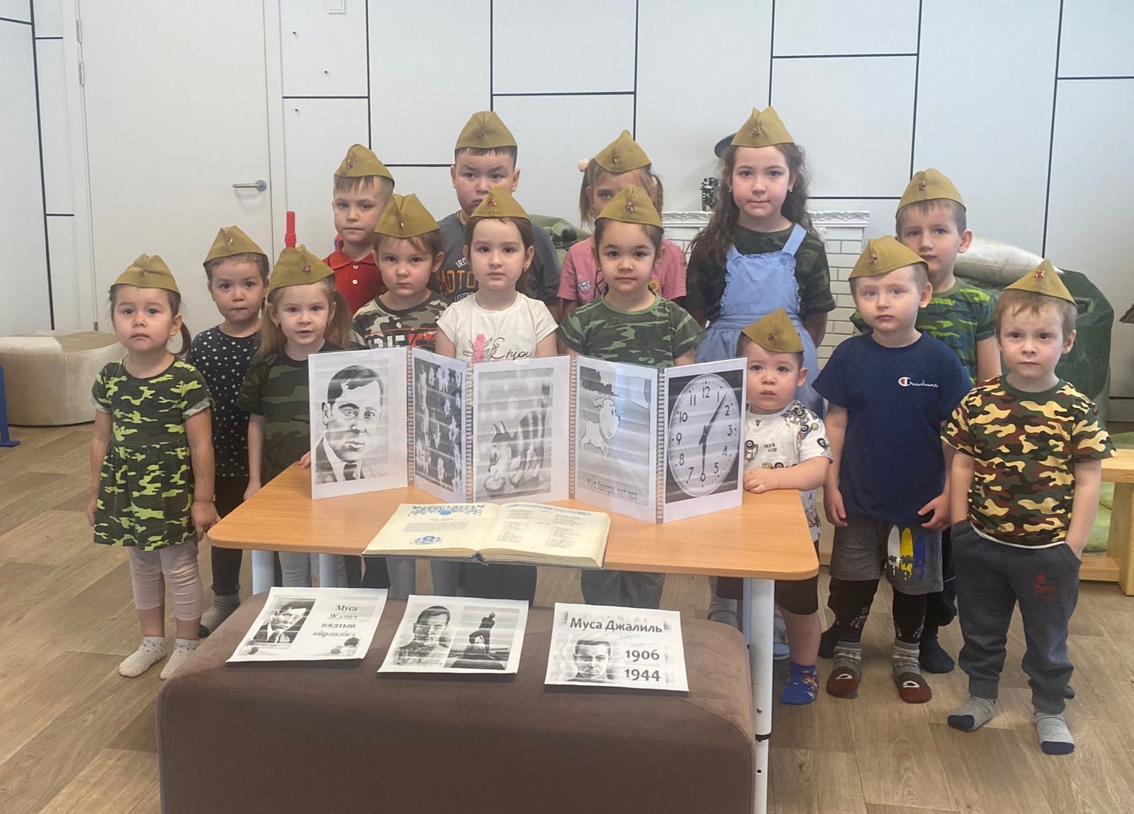 Еще один шаг, посвященный 80-летию Великой Победы.15 февраля исполняется 119 лет со дня рождения поэта-героя Мусы Джалиля. Муса Джалиль-великий поэт татарского народа, Герой Советского Союза, любимый сын татарского народа, поэт, который своими стихами вел ожесточенную борьбу с фашизмом.В связи с этим мы провели с ребятами из детского сада "Тамчы" небольшой вечер под названием "Герой поэт - Муса Джалиль". На литературном часе мы познакомились с поэтом, прочитали вслух его стихи, познакомились с его книгами. В честь Мусы Джалиля была исполнена красивая песня.