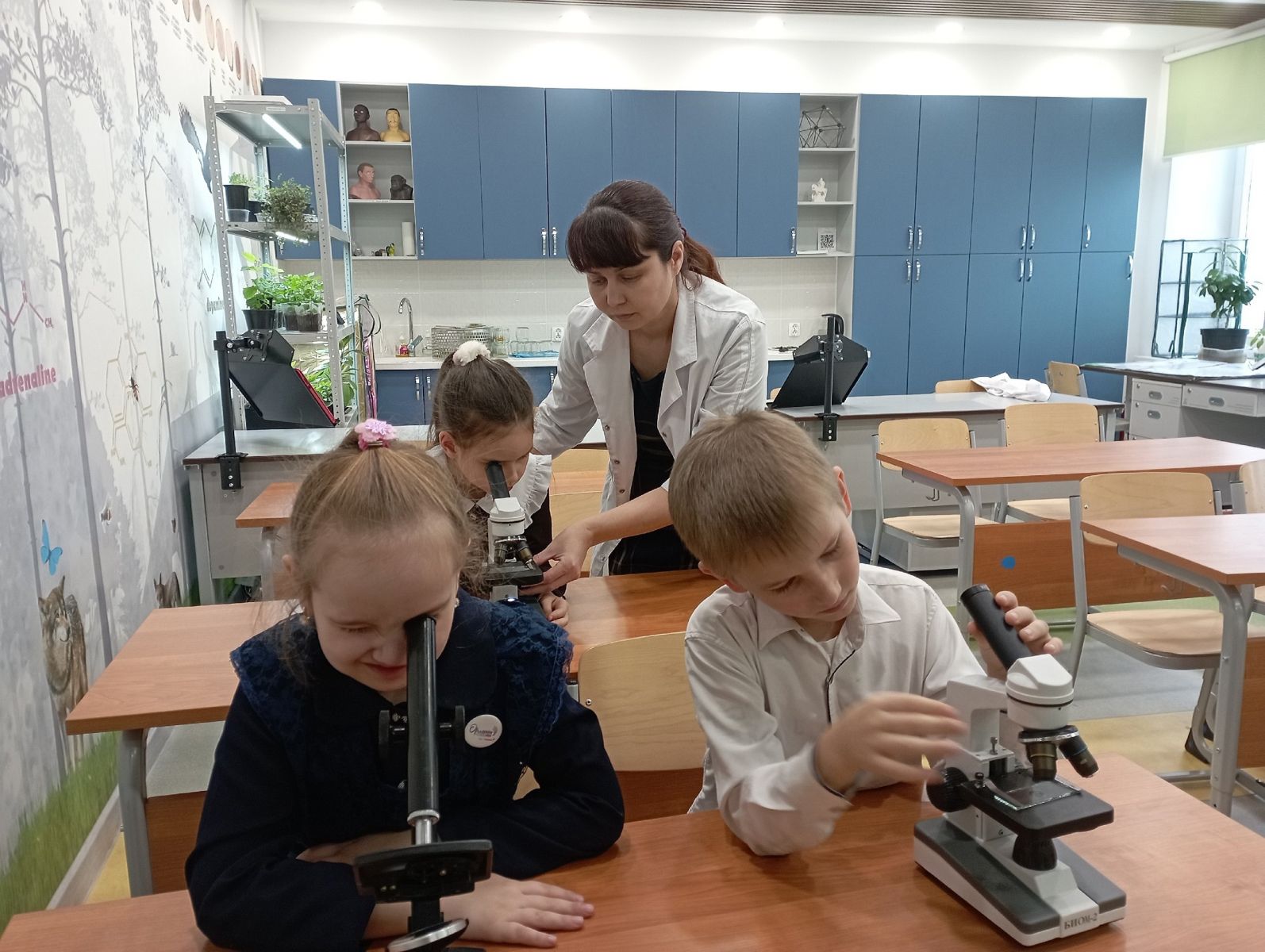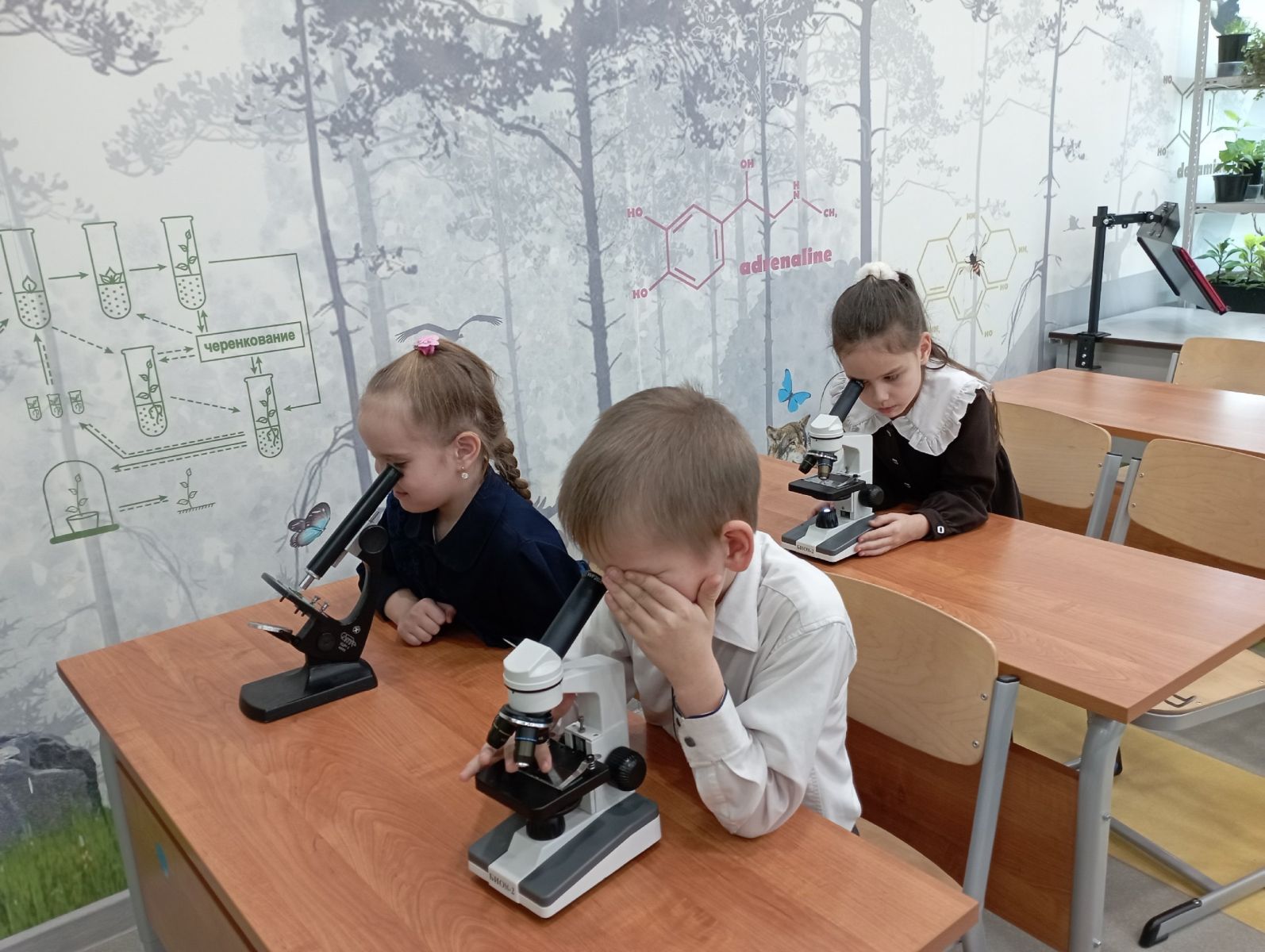 В нашей школе прошло занятие «Знакомство с микроскопом». Ученики 2-4 классов изучили строение микроскопа. В микроскоп ученый смотрит, видно, опыты проводит. Дела нет ему до скуки- весь в работе, весь в науке. Микроскоп – это «научный» прибор, позволяющий ребенку прикоснуться к волшебному и таинственному микромиру. Эта не игрушка. Эта маленькая «научная лаборатория», по своей функциональности не уступающая настоящим биологическим микроскопам.Увлекательное занятие с микроскопом позволяет детям изучить структуру самых разных объектов. Ребята рассматривали лабораторные стекла с образцом растения.