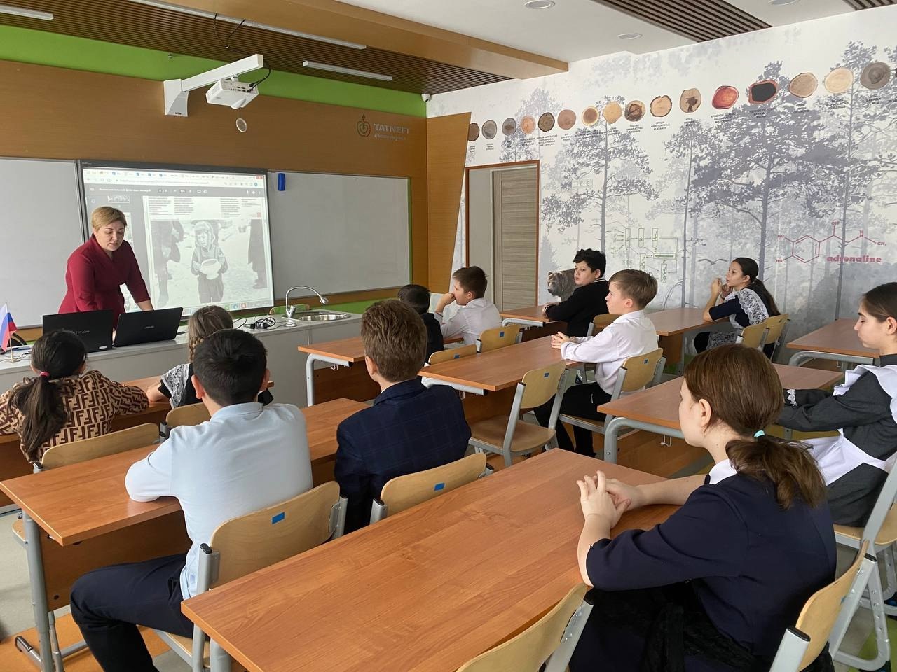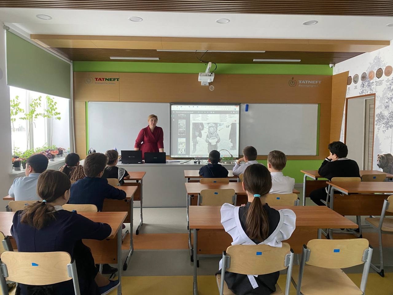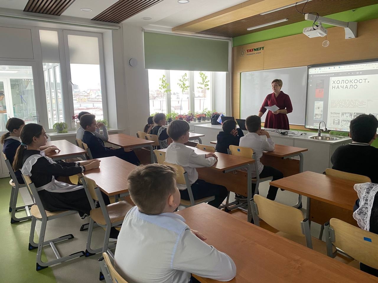 Холокост корбаннарын искә алу көненә багышланган "Кара-Ак Дөнья: фото аша тәрбия" түгәрәк өстәл. Укучылар белән кеше тормышының кыйммәтләре, Бөек Ватан сугышы вакыйгалары турындагы хәтерне саклау турында әңгәмә үткәрелде., интерактив күргәзмә оештырылды.