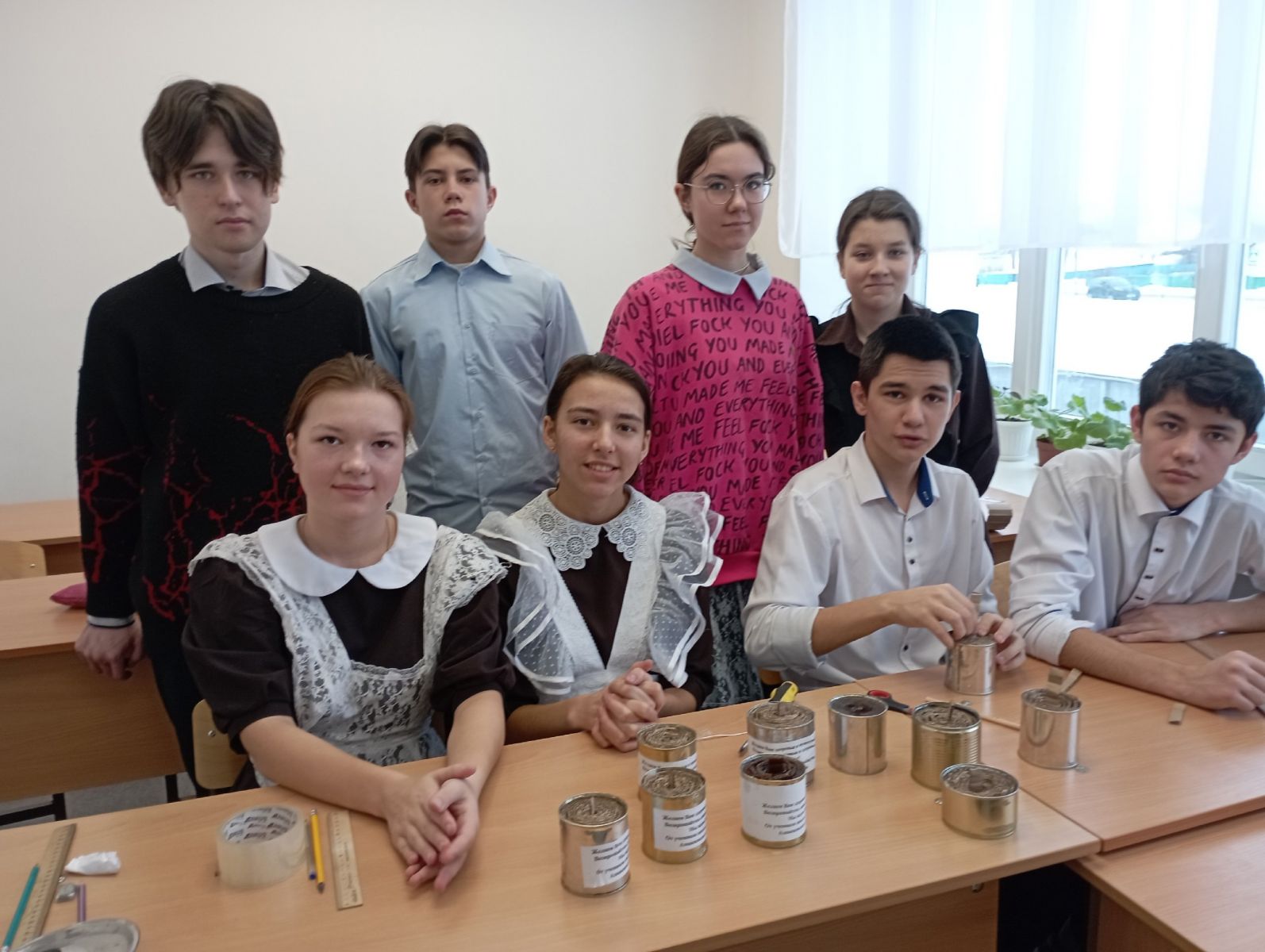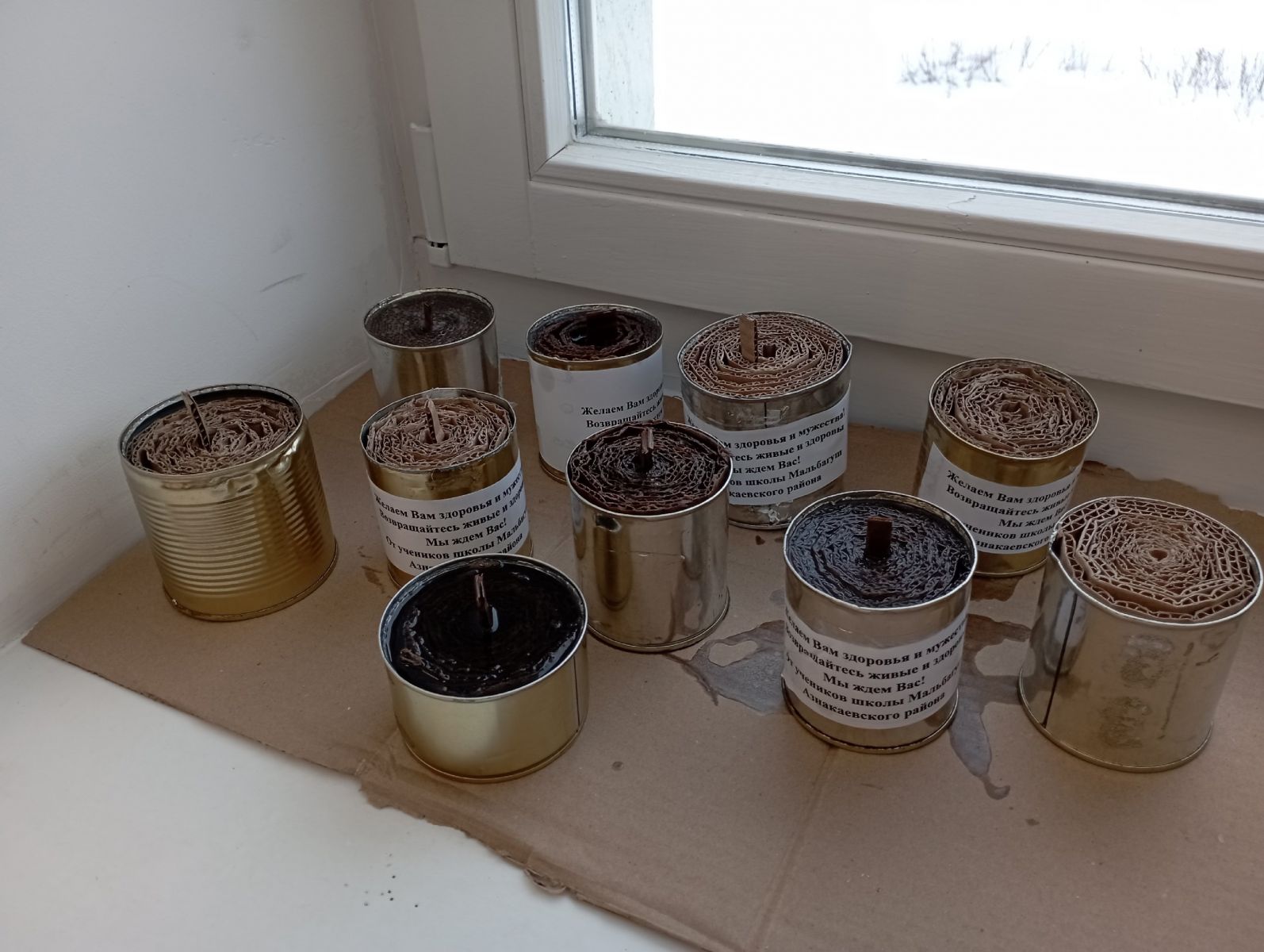 Бүген 9 класс укучылары СВО сугышчылары өчен блиндаж шәмнәр ясадылар. Әле күптән түгел генә СВОда катнашучы, мәктәбебезне тәмамлаган Фирдәвес Х.белән очрашуда балалар фронтта блиндаж шәмнәр кирәклеген, аларның поход һәм сугыш шартларында нинди мөһим роль уйнауларын белделәр. Мондый шәм утыннан җылынырга, ризык әзерләргә, кием-салымны киптерергә була. Очрашудан соң балалар булдыра алганча ярдәм итәчәкләр дигән карар кабул иттеләр - блиндаж шәмнәре ясарга.