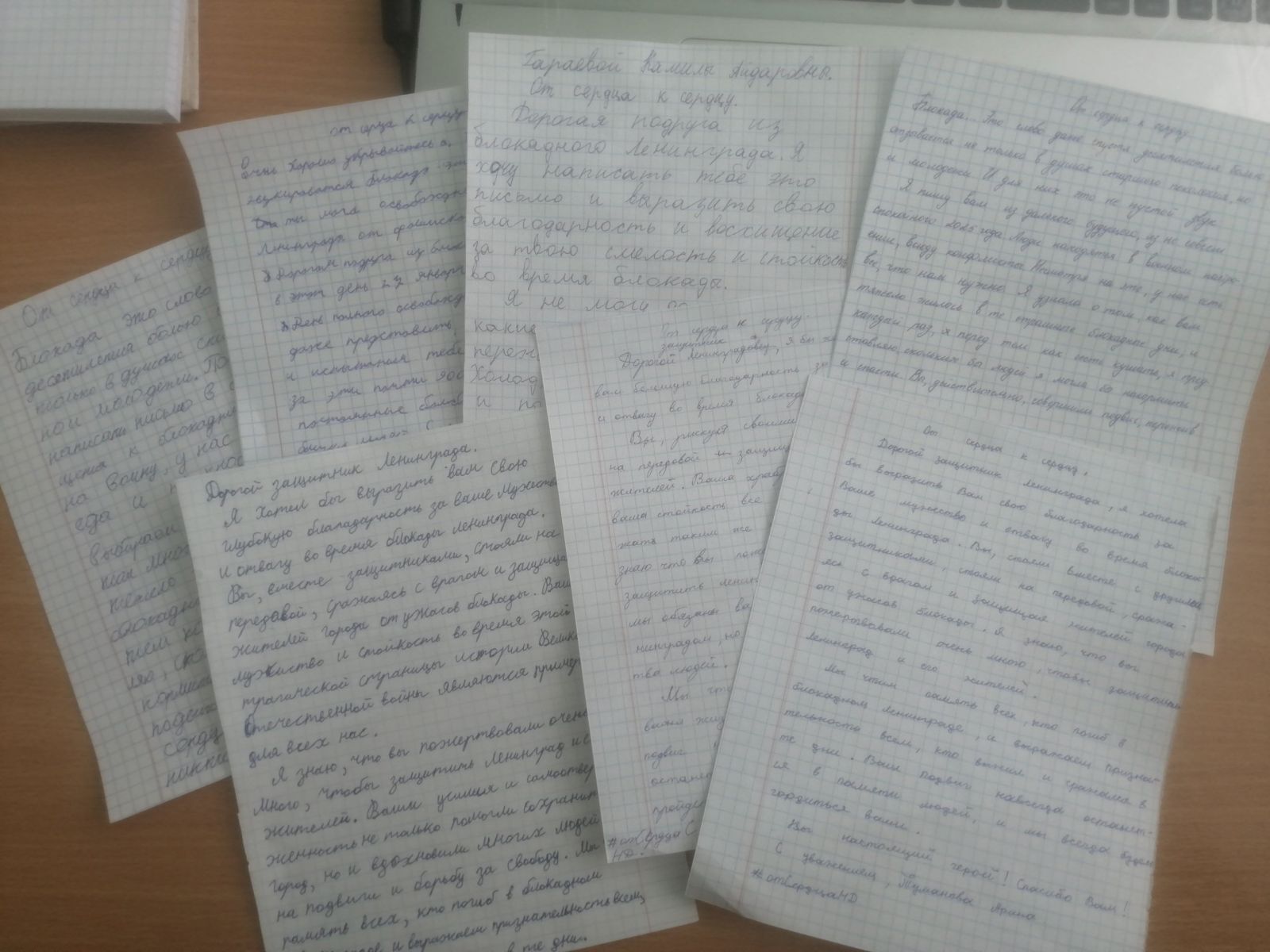 В рамках акции, приуроченной Дню полного освобождения Ленинграда от фашистской блокады с учащимися 7 классов написали письмо жителям и защитникам Ленинграда.