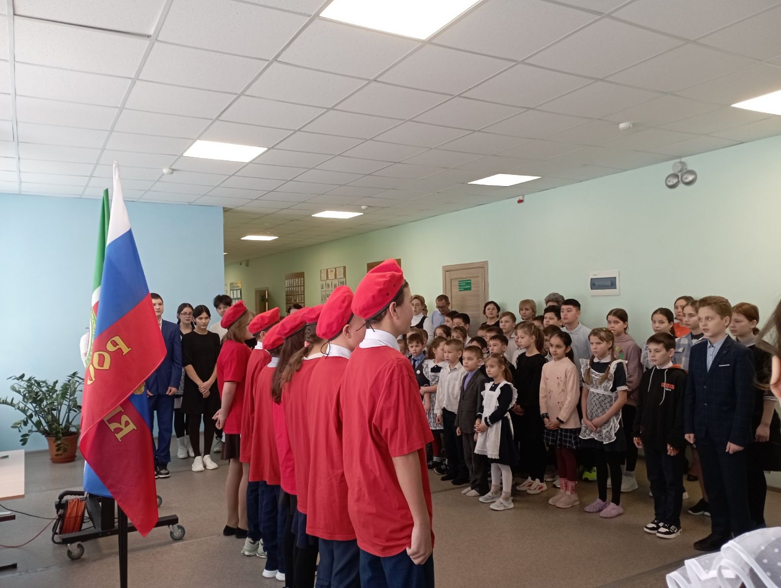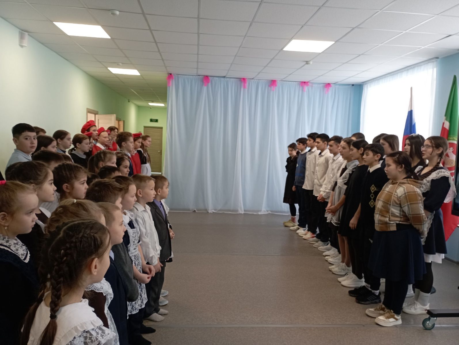 Прошла общешкольная линейка, посвящённая открытию года Защитника Отечества/ Ватанны саклаучылар елын ачуга багышланган мәктәп линейкасы узды