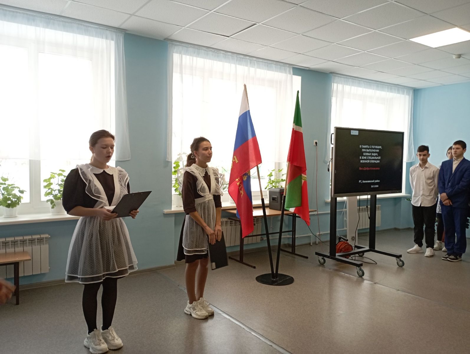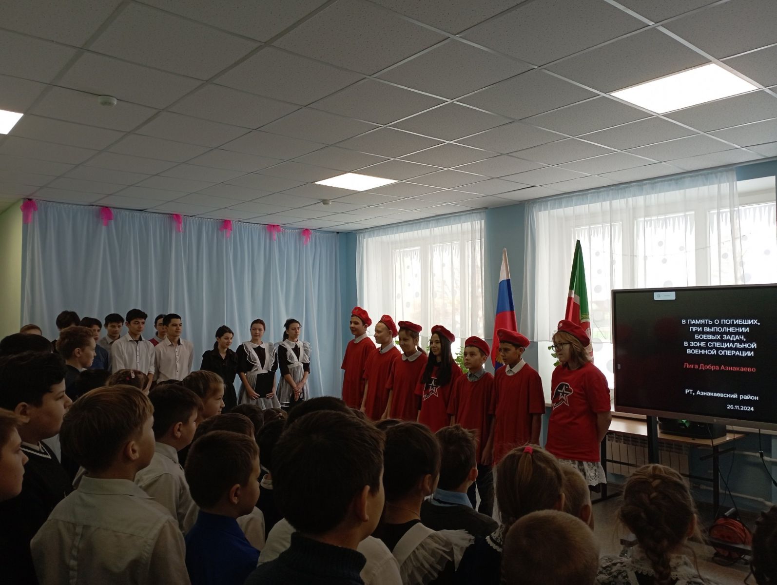 13 январь көнне мәктәбебездә Ватанны саклаучылар елын ачуга багышланган линейка үтте. Линейкада 1-11 сыйныф укучылары катнашты. Яңа ел тематикасын президент махсус операциядә катнашучылар хөрмәтенә һәм ата-бабаларның батырлыклары истәлегенә сайларга тәкъдим итте. Ел тематикасы хәзерге Россиянең өстенлекләрен чагылдыра – патриотлык, буыннар дәвамчанлыгы һәм Ватанны саклаучыларга хөрмәт белдерә.