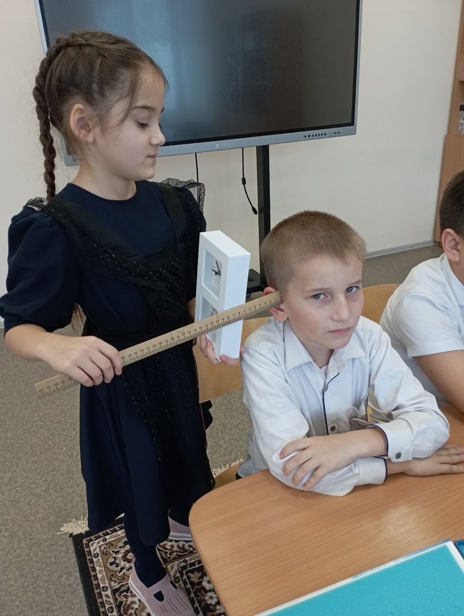 Обучающиеся 2 класса (кл.руководитель Сулейманова Л.Т.) на занятии внеурочной деятельности естественно-научной грамотности изучали влияние шума на организм человека. Проводили эксперименты. Особый интерес вызвал опыт по изучению остроты слуха с применением механических часов. Исследования шумового загрязнения проводились с использованием оборудование Точка Роста.