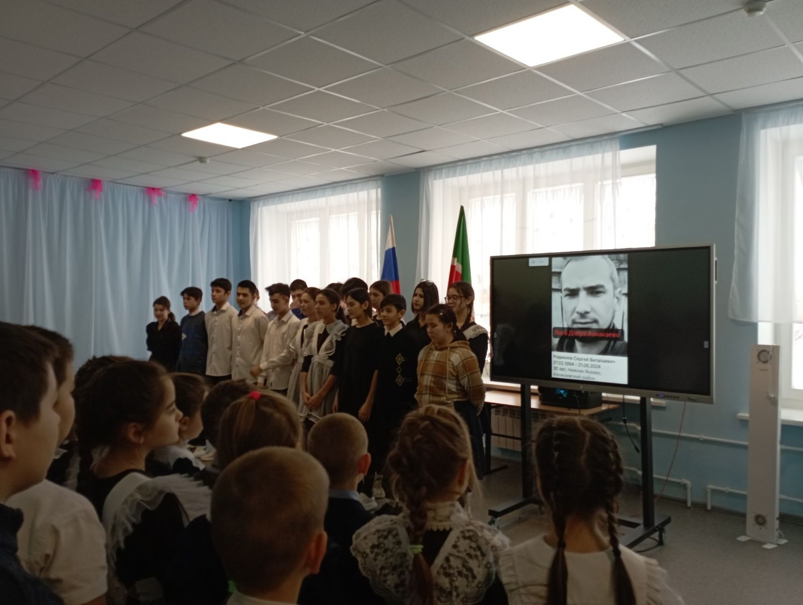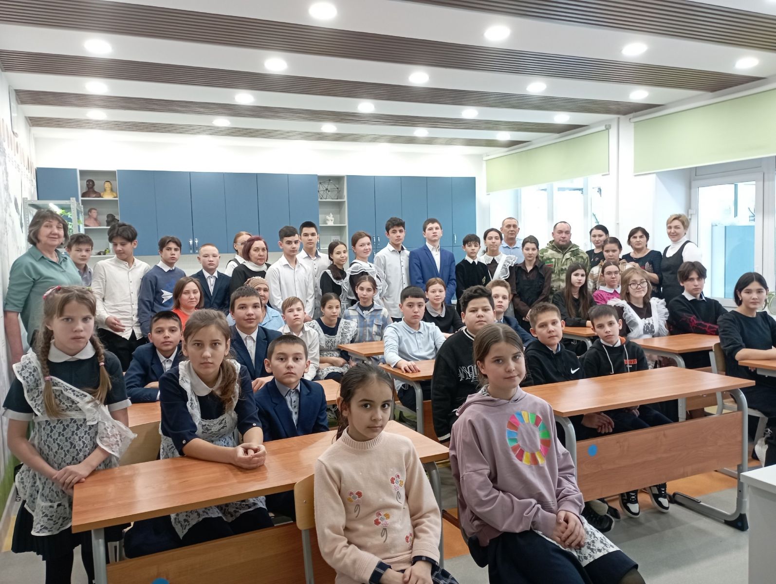 Безнең мәктәпнең 1-9 сыйныф укучылары СВОда катнашучысы Фирдәүс Закирҗан улы Хәсәнов белән очраштылар. Чара «Геройлар йөзе» мәктәп проектын гамәлгә ашыру кысаларында узды.