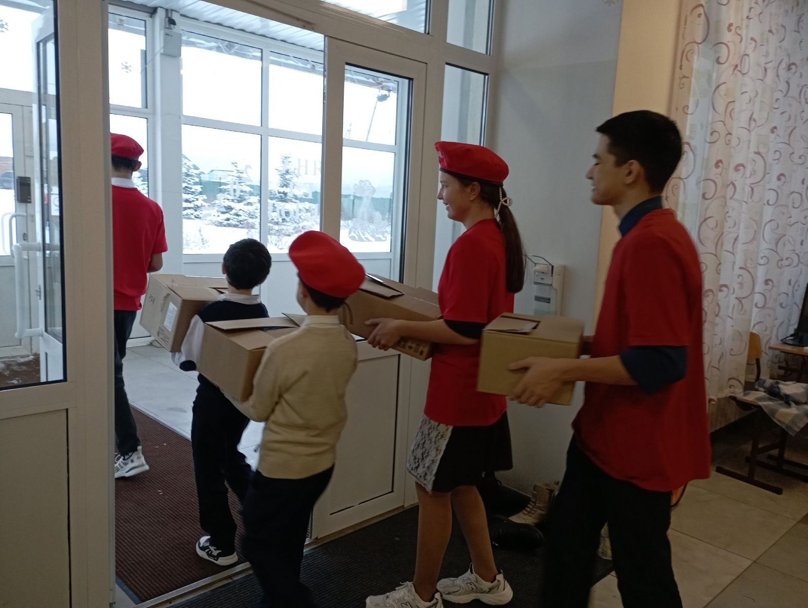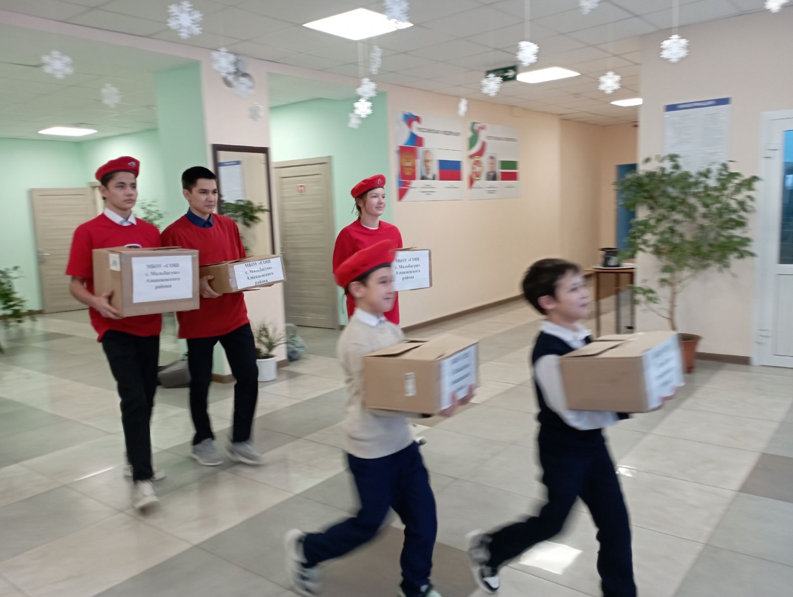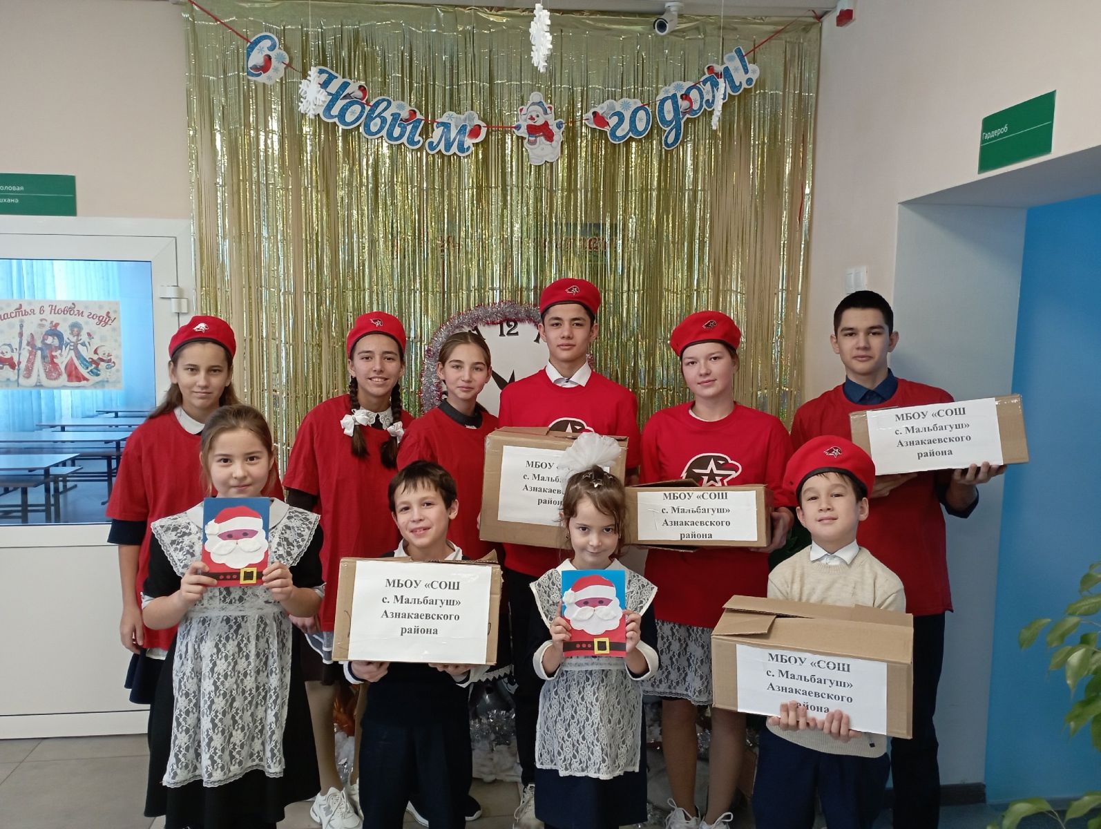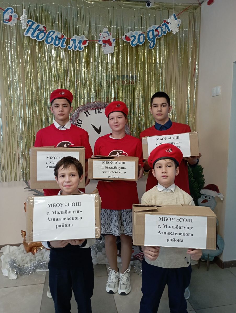 Коллектив МБОУ "СОШ с.Мальбагуш" и ДОУ "Тамчы" собрали новогоднее угощение участникам СВО. Они решили поддержать защитников Отечества.