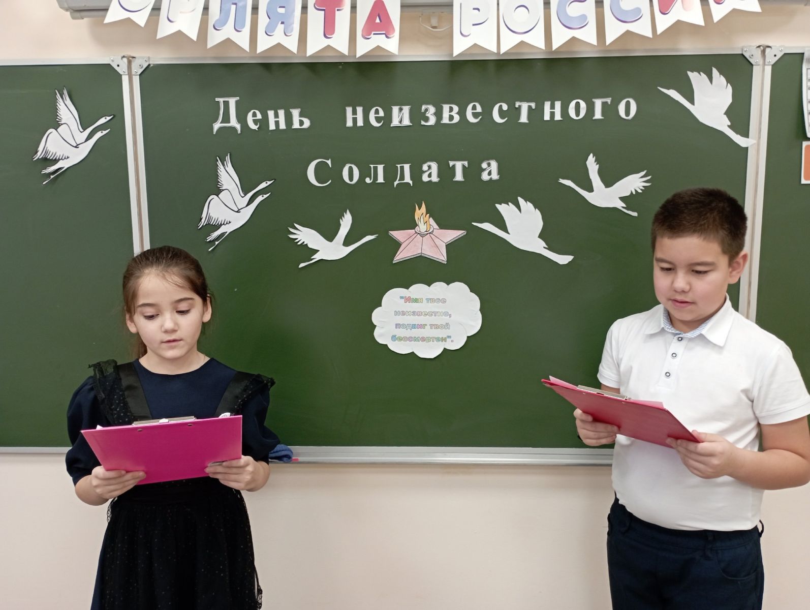 Сегодня у нас в школе прошли уроки мужества!!! 3 декабря — это особая дата в нашем календаре. В этот день мы отмечаем День Неизвестного Солдата, день памяти тех, кто отдал свои жизни за нашу Родину, не оставив после себя имен. Этот день был установлен в 1966 году и стал символом безвестной борьбы и героизма миллионов солдат, защищавших нашу страну во время самых страшных времён. В этот день мы обязаны задуматься о том, как важно помнить и уважать тех, кто защищал нашу страну. Такие праздники формируют наше отношение к истории и помогают передавать наследие будущим поколениям. День Неизвестного Солдата — это не только о прошлом, это и о нашем будущем. Помня о тех, кто отдал свои жизни, мы несём их память в своих сердцах и стараемся сделать мир лучше.