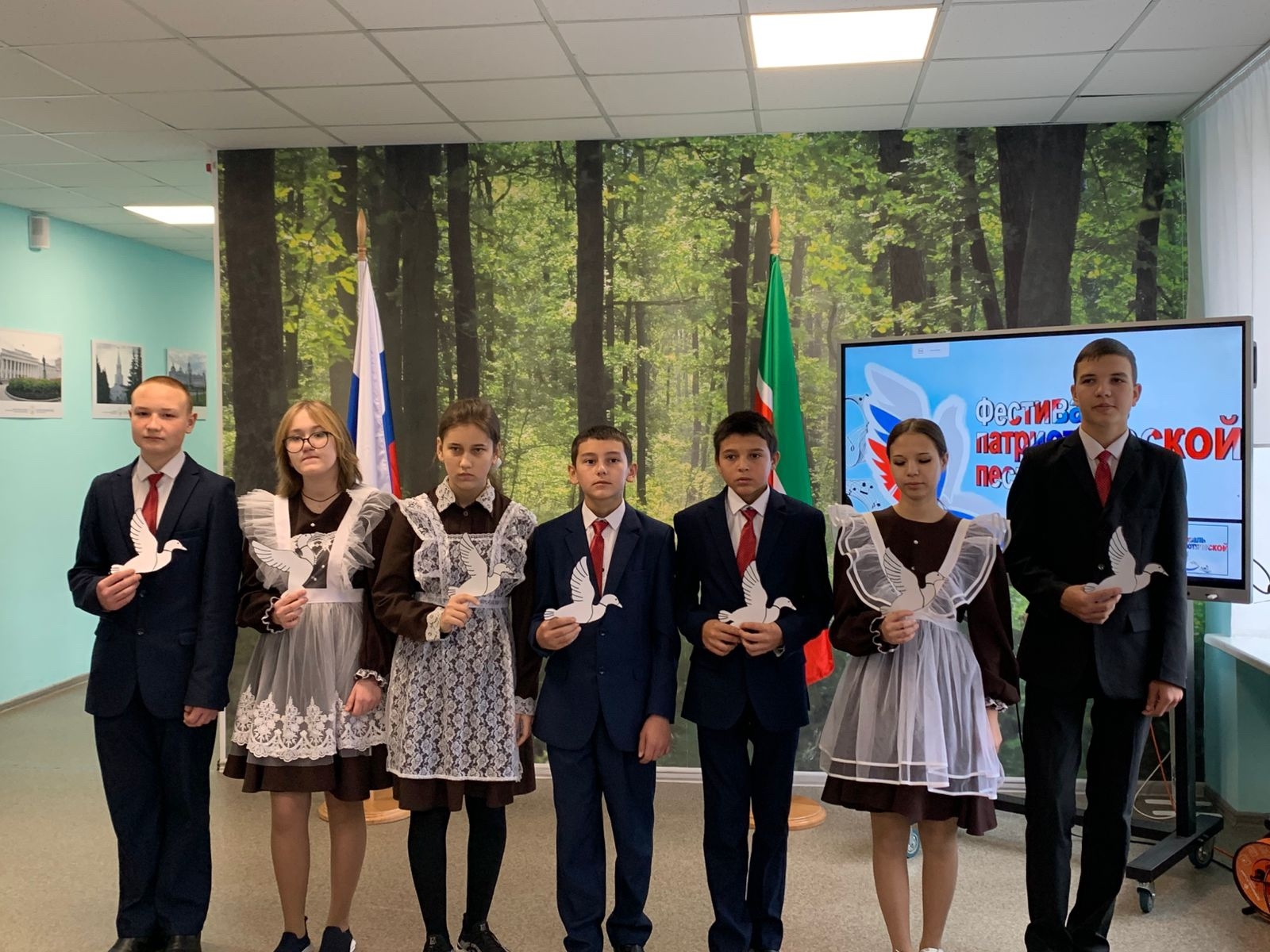 Ребята исполняли произведения с чувством патриотизма и гордости за свою Родину. Все выступления были проникновенными и эмоциональными, не оставили равнодушными никого из участников и зрителей фестиваля. Хочется поблагодарить всех: участников фестиваля за подаренные эмоции, классных руководителей за подготовку учащихся.Бүген мәктәбебездә «Без тынычлык өчен» дип аталган хәрби-патриотик җыр фестивале узды. Бу көнне Ватан, солдатлар турында бик күп җырлар яңгырады. Сугыш еллары җырларын башкардылар. Балалар әсәрләрне патриотизм һәм Ватаннары өчен горурлык хисе белән башкардылар. Барлык чыгышлар да тирән эчтәлекле һәм эмоциональ булды, фестивальдә катнашучыларның һәм тамашачыларның берсен дә битараф калдырмады.